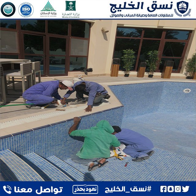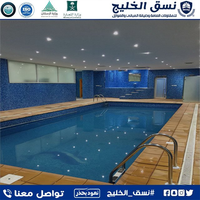 تعد المسابح وسيلة ترفيهية مستحبة لدى الكبار والصغار خلال فصل الصيف وخاصة مع ارتفاع درجات الحرارة ومع تغيرات المناخ التي تزيد من رطوبة المناخ لذلك يفضل مراقبة نظافة المسبح وصيانة معداته من قبل شركة متخصصة ، تمتلك شركة نسق الخليج مجموعة من الفنيين أصحاب الخبرة الطويلة في تنظيف وصيانة المسابح واعمال العزل المائي  في الملكيات الخاصة والعامة للمنازل والمباني الخدمية والسكنية، مع تكلفة مثالية ونتائج رائعةو بأقل الاسعار بضمانات معتمدة وبأحدث الاجهزة والمواد المتخصصة فى التعقيم .